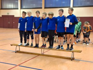 Unsere Mannschaft konnte sich beim Spieltag in Baschütz noch einmal steigern. Sowohl bei der Begrüßung wie auch im Spiel gaben unsere Kinder alles. Während wir am ersten Spieltag gegen alle Mannschaften über 3 Sätze gehen mussten, konnten wir diesmal alle Spiele in zwei Sätzen für uns entscheiden. Im letzten Spiel gegen den Spitzenreiter aus Kübschütz gelang uns eine konzentrierte Leistung. Wir gewannen das Spiel glatt mit 2:0 und konnten damit die Vorrunde als Erster abschließen. Nun gilt es sich gut auf die Bezirksmeisterschaften am 25.01.2025 vorzubereiten. Ein großes dankeschön geht an die Eltern und Großeltern welche unser Team in Baschütz unterstützt haben.